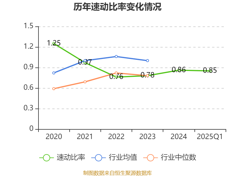 2025年第一季度,公司流动比率为0.91,速动比率为0.85。