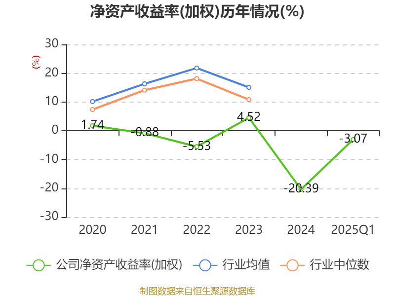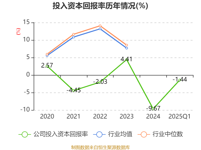 盈利能力方面, 2025年一季度公司加权平均净资产收益率为-3.07%,同比上升0.69个百分点。公司2025年第一季度投入资本回报率为-1.44%,较上年同期下降0.04个百分点。
