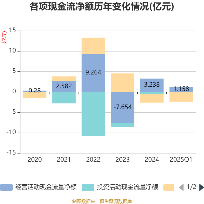截至2025年一季度末,公司经营活动现金流净额为1.16亿元,同比增长14.24%;筹资活动现金流净额-2.42亿元配资交流,同比减少2.54亿元;投资活动现金流净额-87.93万元,上年同期为-2255.23万元。