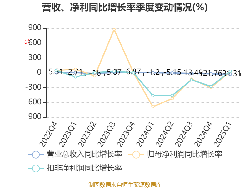 资产重大变化方面,截至2025年一季度末,公司应收票据及应收账款较上年末减少11.19%,占公司总资产比重下降2.24个百分点;固定资产较上年末减少1.1%,占公司总资产比重上升2.22个百分点;货币资金较上年末减少49.73%,占公司总资产比重下降1.66个百分点;预付款项较上年末增加772.93%,占公司总资产比重上升1.52个百分点。