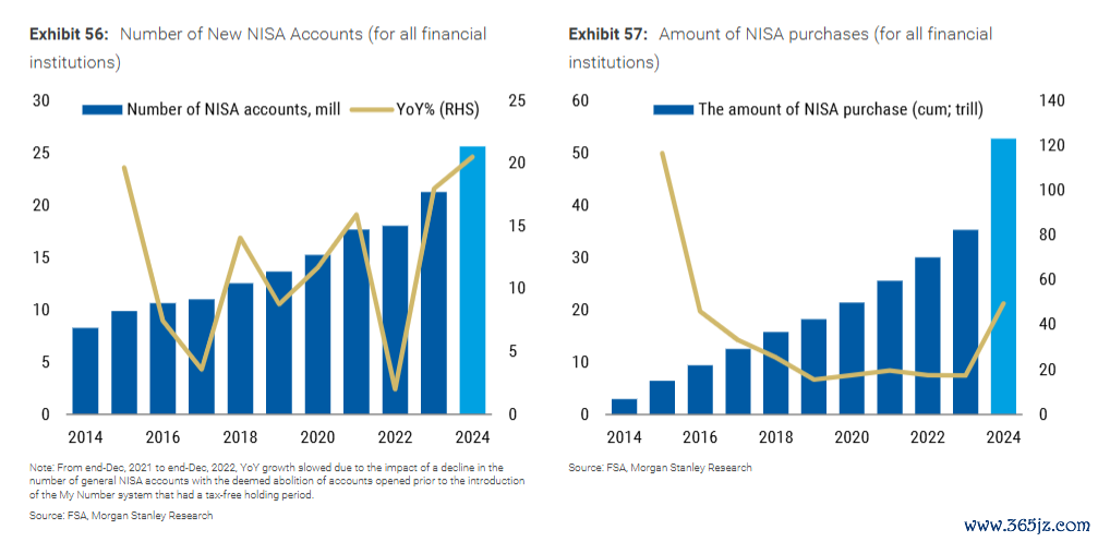 大摩测算认为,未来十年间,年轻一代将继承超300万亿日元资产,推动家庭金融资产从 “储蓄型” 向 “投资型” 迁移。这一趋势在高净值与富裕阶层尤为明显:资产超5000万日元的客群中,27%的金融资产流向股票与另类投资,较2020年提升9个百分点,而遗产规划、跨境投资等需求占比超60%。