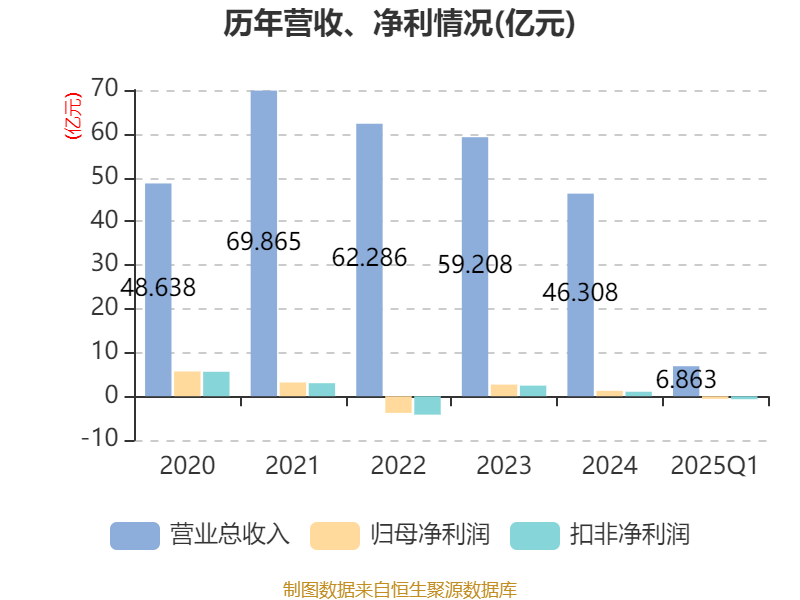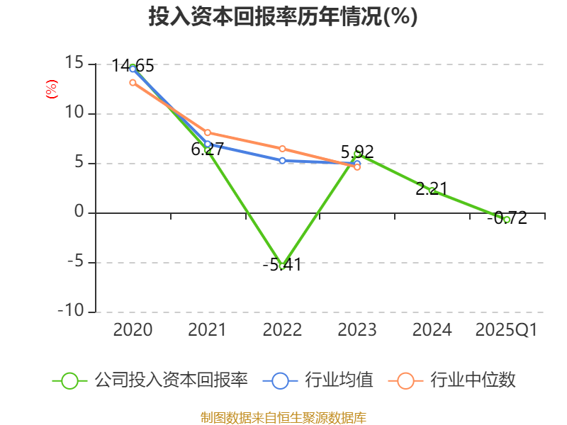 盈利能力方面, 2025年一季度公司加权平均净资产收益率为-1.79%,同比下降2.07个百分点。公司2025年第一季度投入资本回报率为-0.72%,较上年同期下降0.98个百分点。