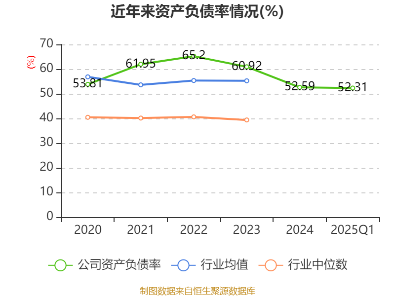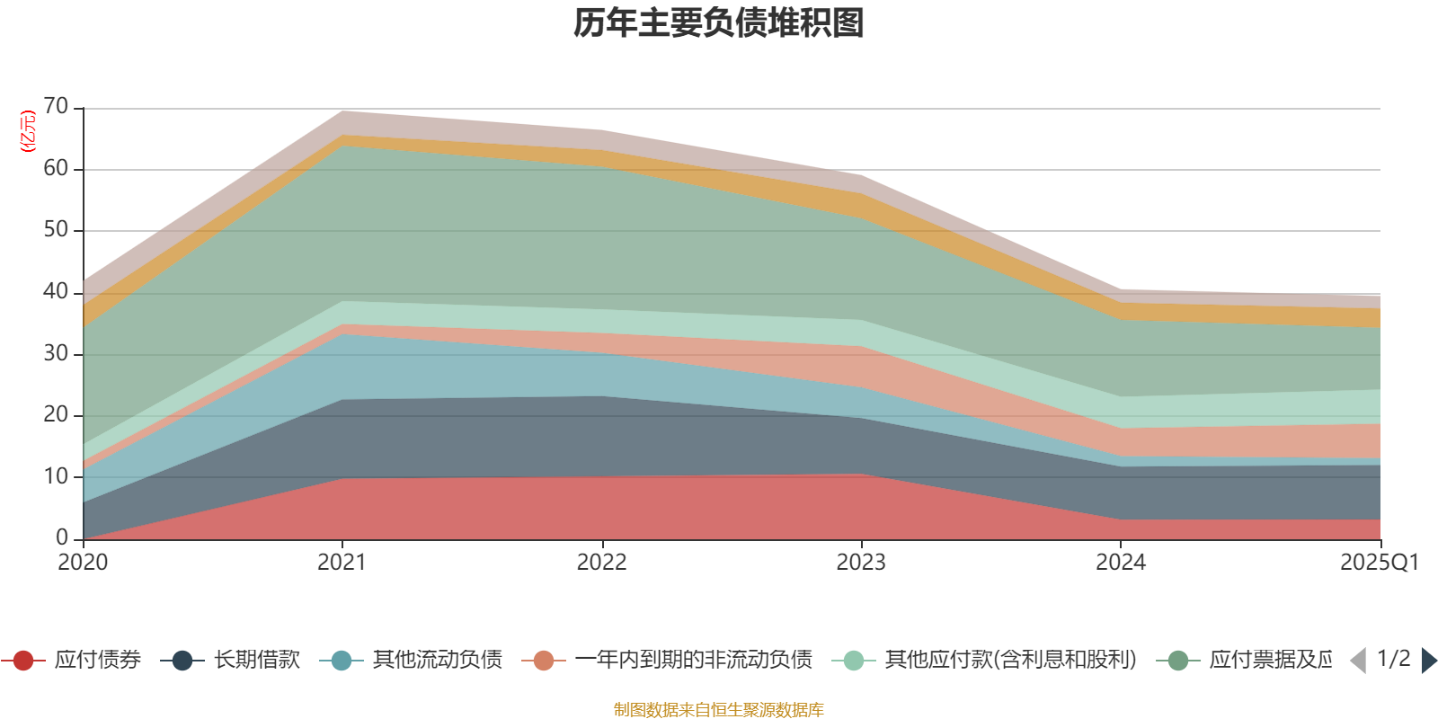 负债重大变化方面,截至2025年一季度末,公司应付票据及应付账款较上年末减少19.66%,占公司总资产比重下降2.89个百分点;一年内到期的非流动负债较上年末增加23.65%,占公司总资产比重上升1.55个百分点;其他流动负债较上年末减少35.23%,占公司总资产比重下降0.76个百分点;其他应付款(含利息和股利)较上年末增加8.44%,占公司总资产比重上升0.72个百分点。