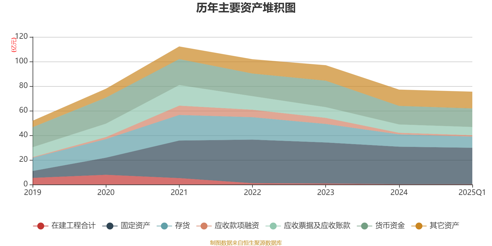 资产重大变化方面,截至2025年一季度末,公司存货较上年末减少8.99%,占公司总资产比重下降0.91个百分点;货币资金较上年末减少0.07%,占公司总资产比重上升0.42个百分点;其他非流动金融资产较上年末增加44.25%,占公司总资产比重上升0.41个百分点;预付款项较上年末增加114.58%,占公司总资产比重上升0.34个百分点。