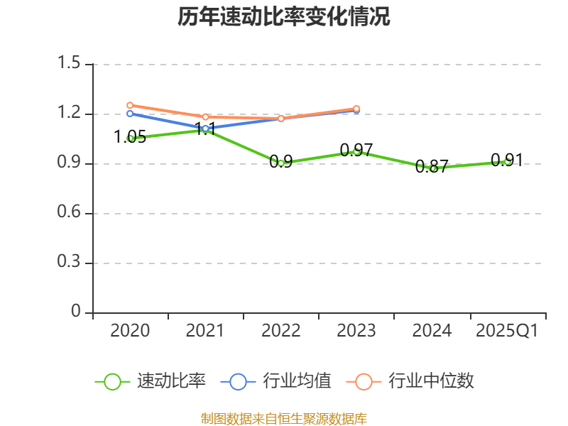 2025年第一季度,公司流动比率为1.25,速动比率为0.91。